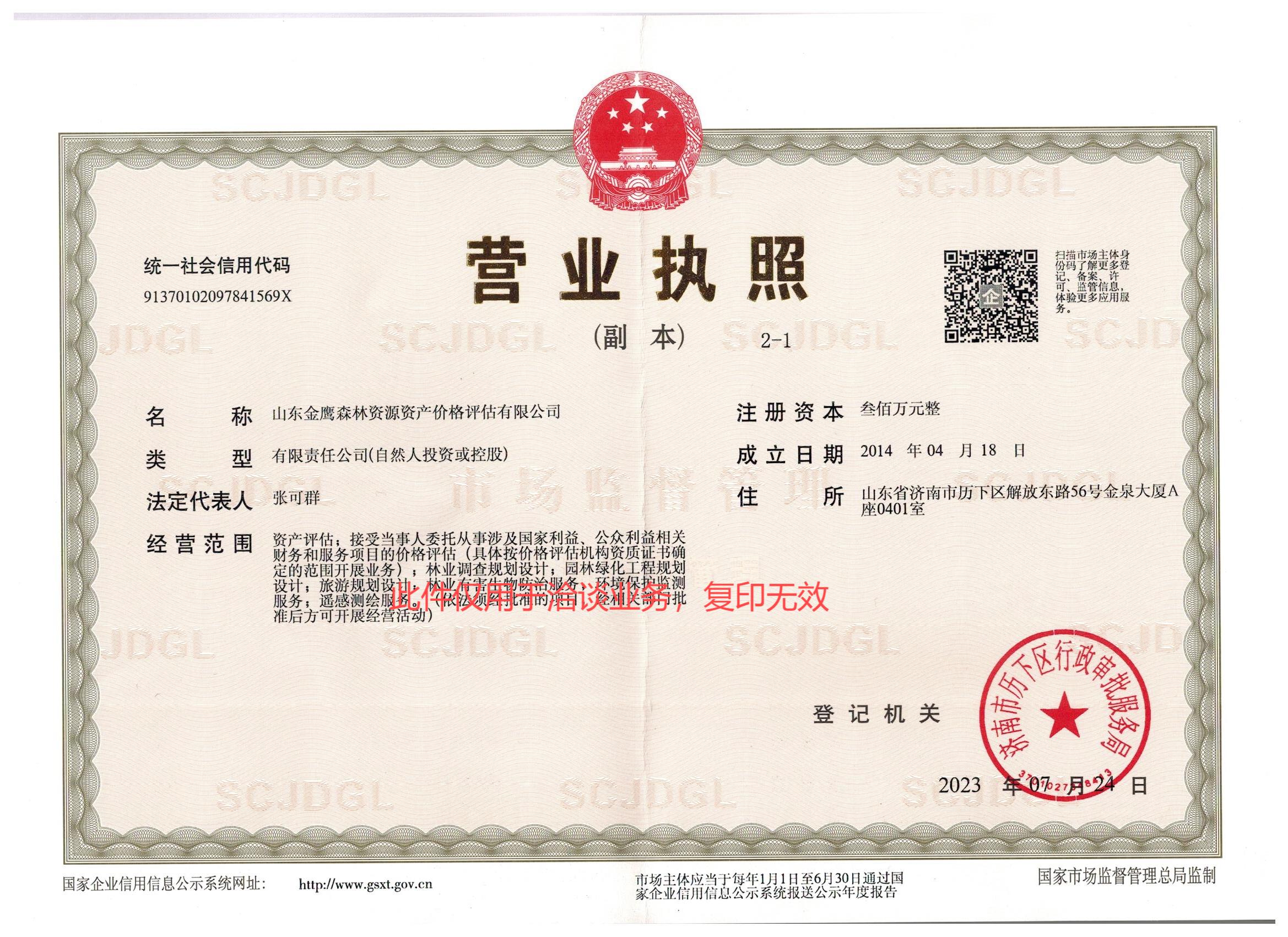 自然資源監(jiān)測調(diào)查、規(guī)劃設(shè)計和資產(chǎn)評估等領(lǐng)域山東金鷹森林資源資產(chǎn)價格評估有限公司于2014年4月由山東省林業(yè)科技培訓(xùn)中心立項組建成立,后注冊改為民營企業(yè),實行公司化經(jīng)營,注冊資金300萬元。本公司是經(jīng)原省林業(yè)廳審核,省物價局批準(zhǔn)頒發(fā)的第一批省內(nèi)森林資源資產(chǎn)價格評估資格的專業(yè)機構(gòu)。